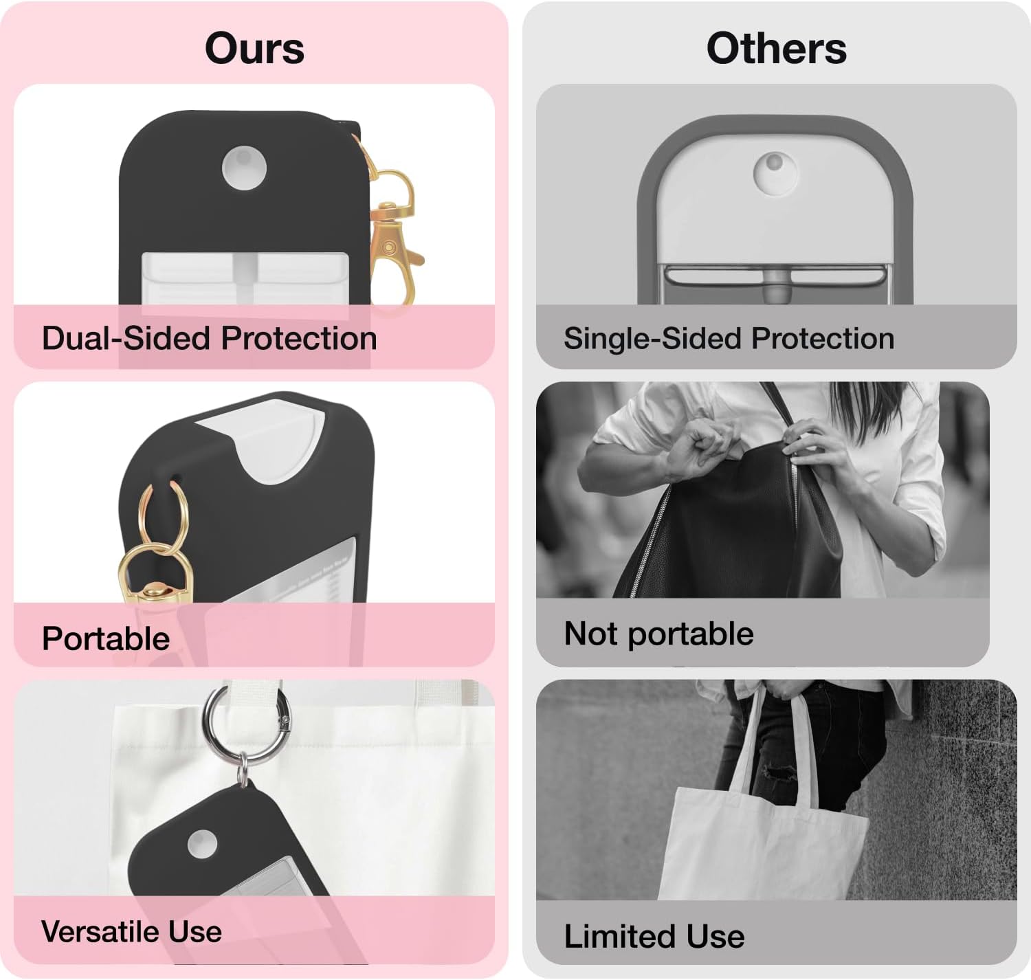 Drop Safety: Gentle silicone protecting case resist shocks and scratches, defend your hand sanitizer bottle from unintentional bumps or drops.