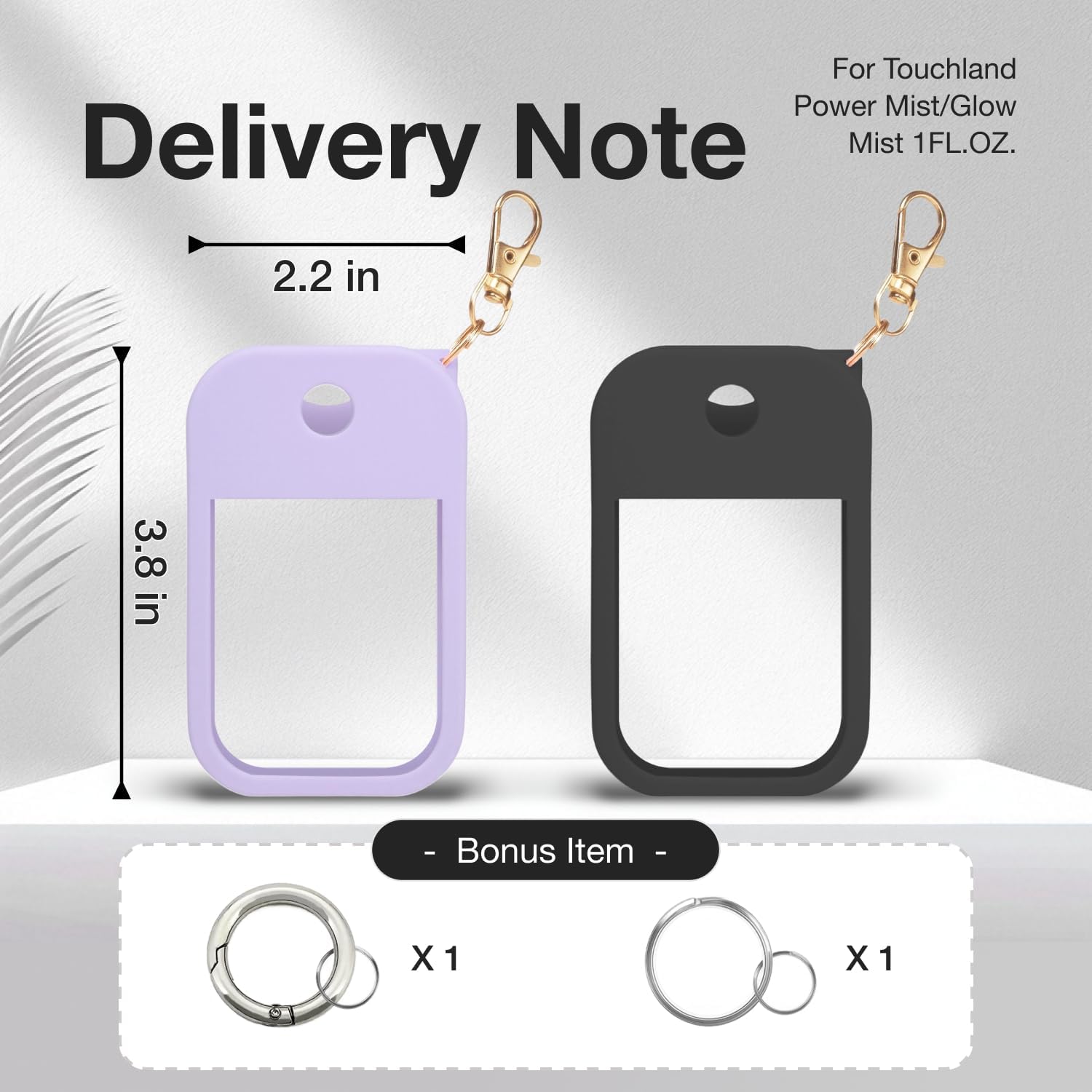 - 68% 2 PCS Gentle Silicone Case for Touchland Energy Mist (1FL. OZ./30 mL), Protecting and Trendy Case with Keychain Suitable with Touchland Hand Sanitizer Spray (Purple/Black)