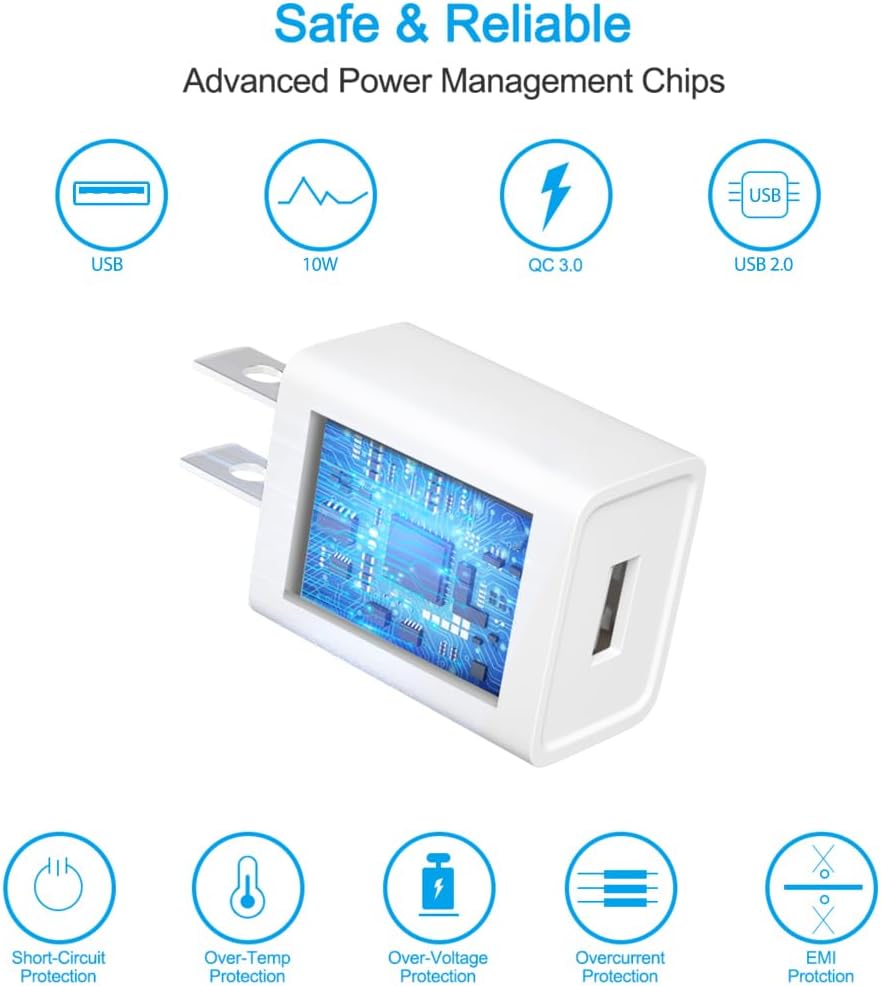Safety: USB Adapter Charger designed with safeguard options of over-voltage safety, over-current safety and short-circuit safety, accredited and authorized by UL and ROHS.