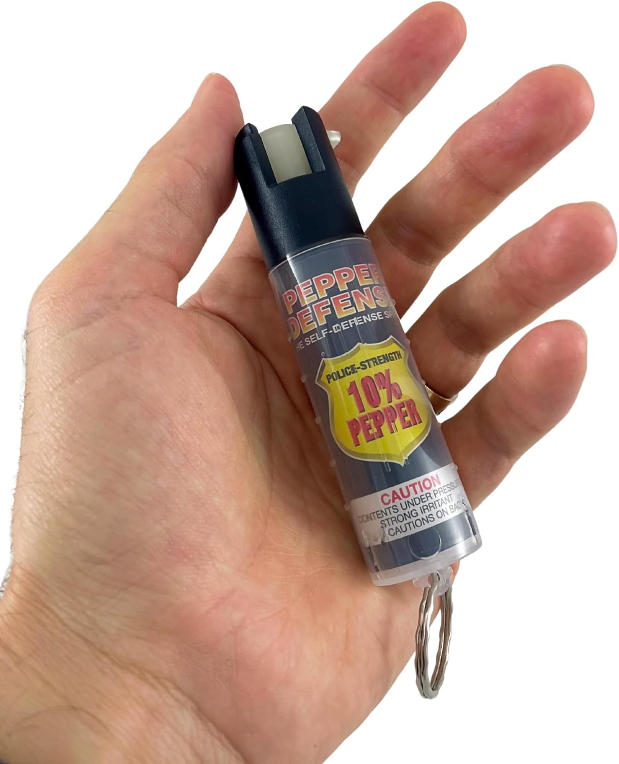 INTEGRATED KEY CHAIN RING – Keychain attachment permits for quick, quick entry to pepper spray in an emergency.