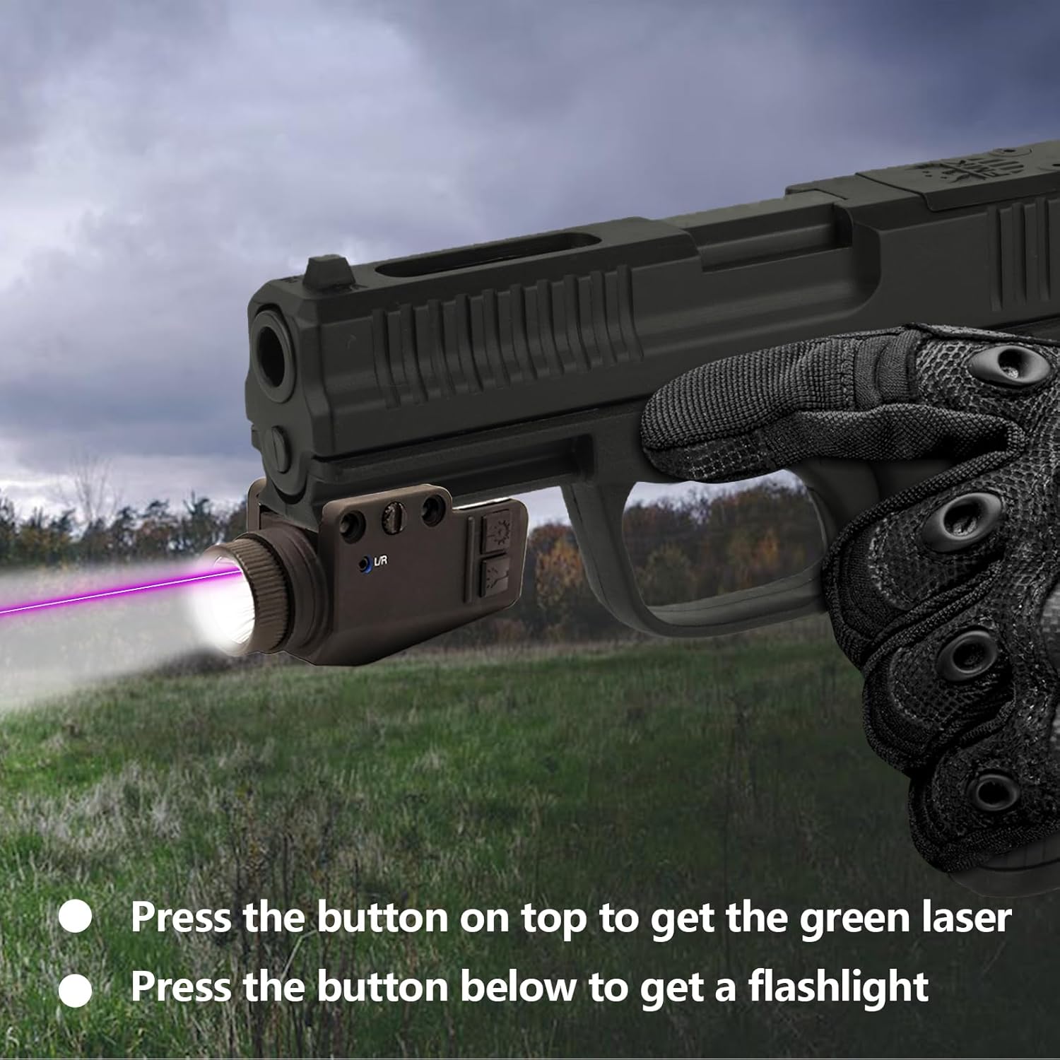 Good rear change: proper button for flashlight, left button for inexperienced laser, lengthy press left button for flicker mode.