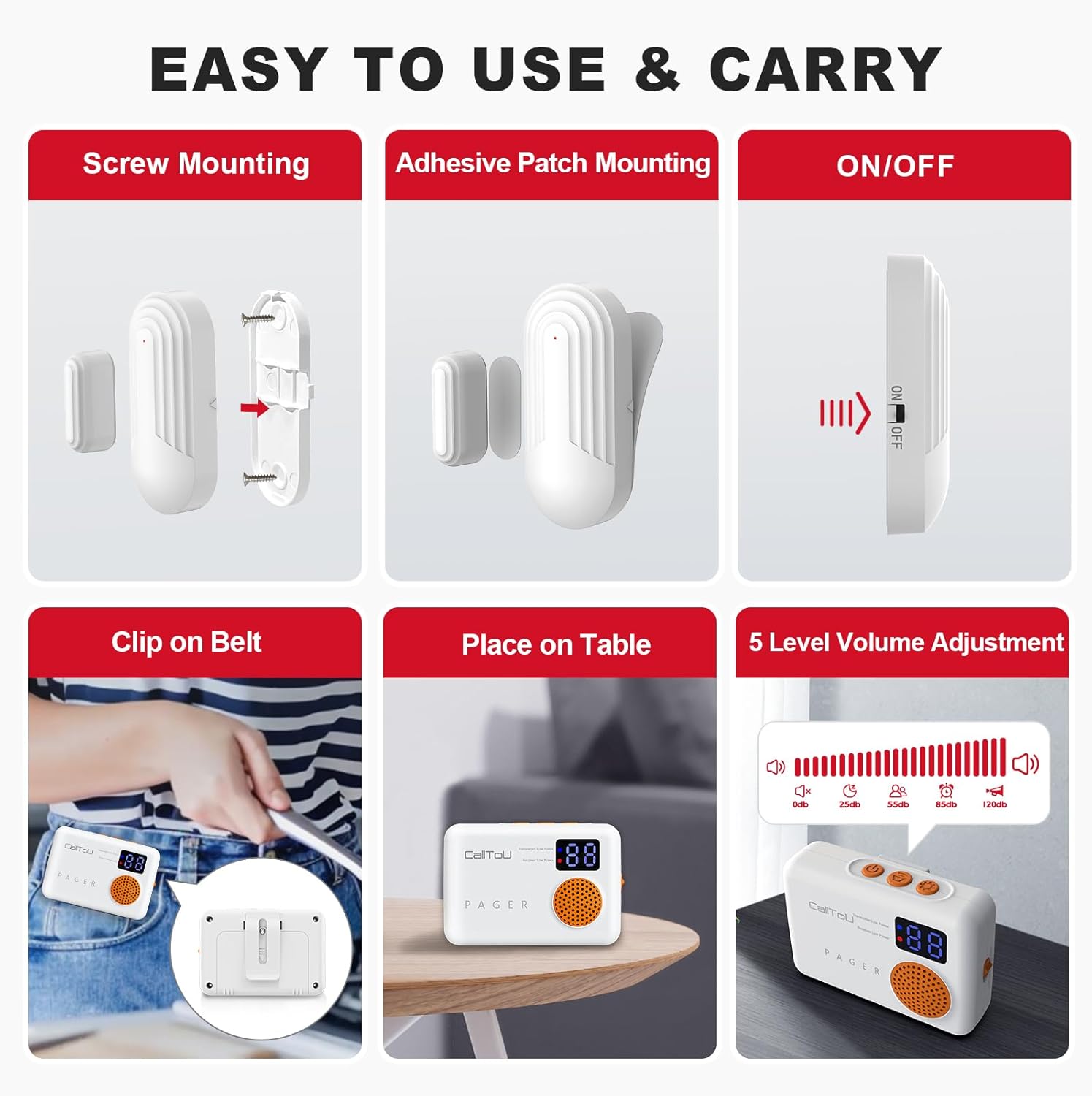 FOR CHILD AND ELDERLY CARE: You probably have younger youngsters making an attempt to sneak out of their bedrooms, or to assist warn you to an aged particular person with dementia making an attempt to go away the home. This wi-fi window magnetic sensors is an effective way to warn you. Vibration and digital show design, in order that hearing-impaired folks can maintain them with peace of thoughts.
