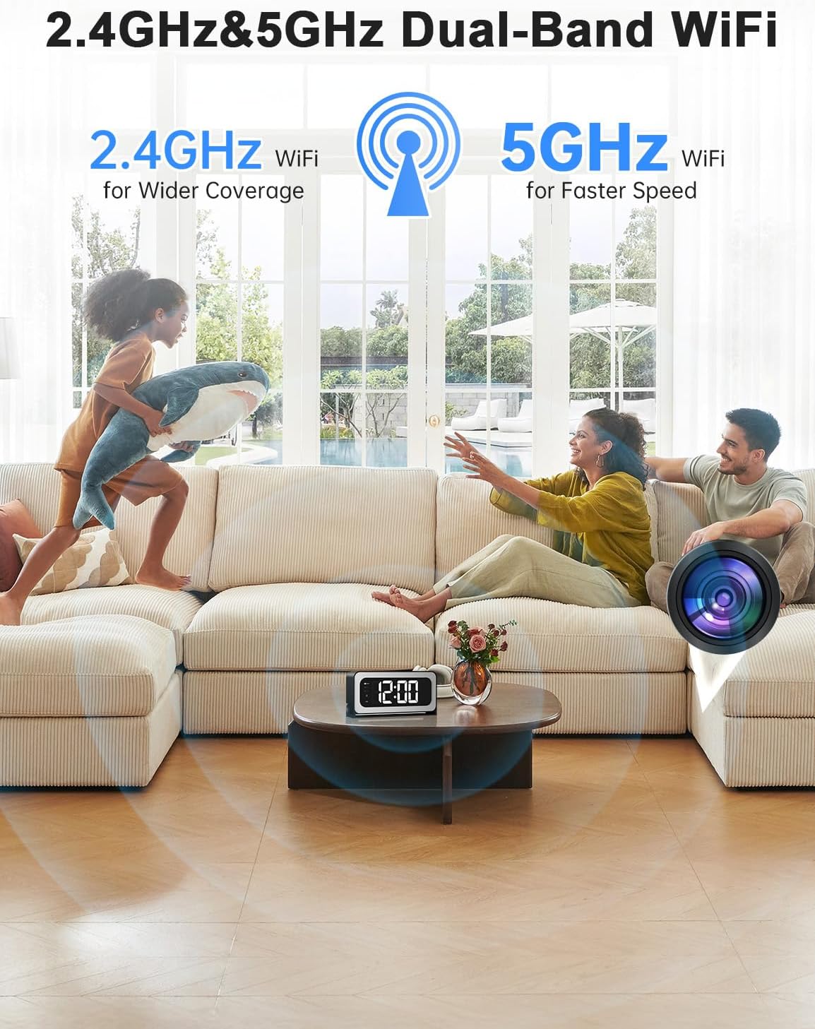 【2K RESOLUTION & Enhanced Night time Imaginative and prescient】The Clock Video Digicam Crystal clear Extremely HD video high quality with superior picture sensor for sharp element and vibrant colours in dwell streaming and recordings.That includes superior evening imaginative and prescient capabilities, the digital camera captures clear photographs even in low-light situations, making certain round the clock safety, day or evening.