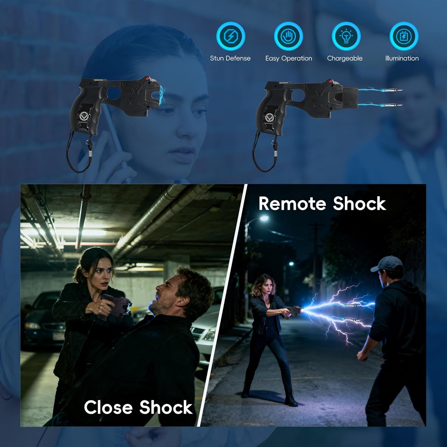 Multi-Safety : Shut Vary 8000KV digital shock and Distant Vary 15 foot efficient Shock.