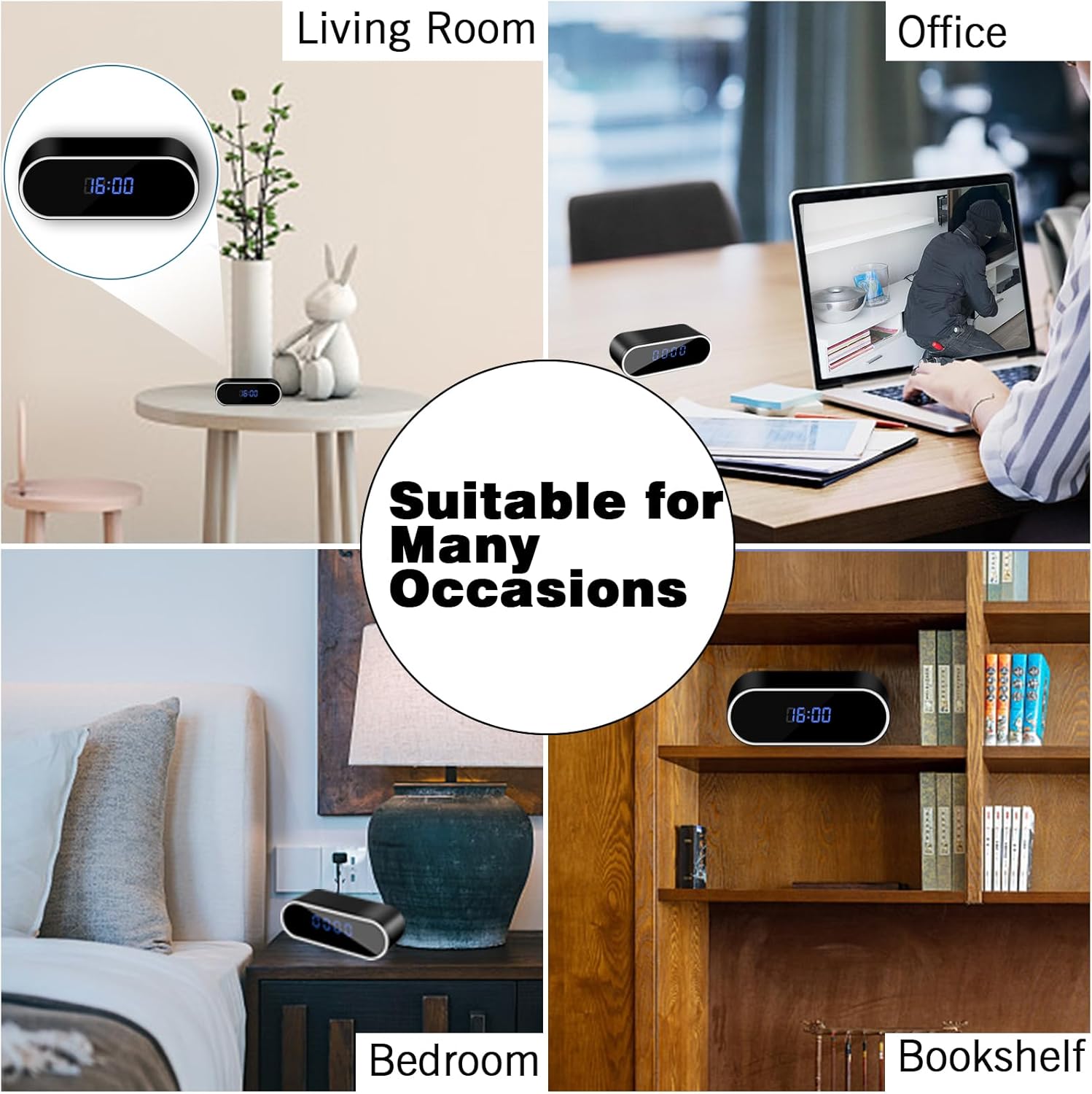 DISCREET DESIGN: Modern clock look with blue LED show maintains full discretion whereas functioning as each timepiece and digicam