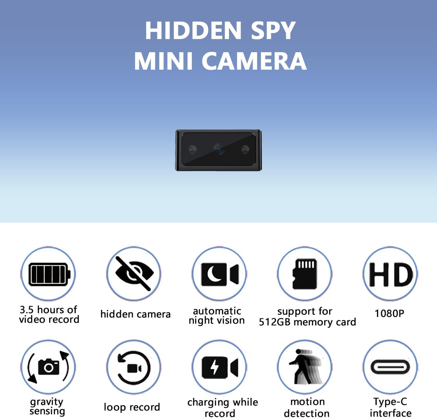 【Excessive-High quality】: Mini, Transportable, Small design,and it offers sharp and clear high-quality 1080P HD proper. ensures captures are clear. – 【Constructed-In Battery & Report Whereas Charging】Mini Spy Digital camera with a built-in 500 mAh rechargeable lithium battery, which might be final for 3.5 hours when totally charged. It additionally helps working whereas charging, making it a robust instrument for all times. (By way of Amazon no audio coverage)