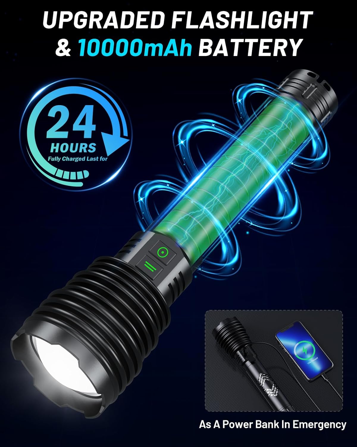 Highly effective Flashlights 600000 Excessive Lumens, 10000mAh Battery | 6 Modes with Quick Cost, Tremendous Shiny Rechargeable Flashlight IP67 Waterproof & Shock Resistant for Outside Actions