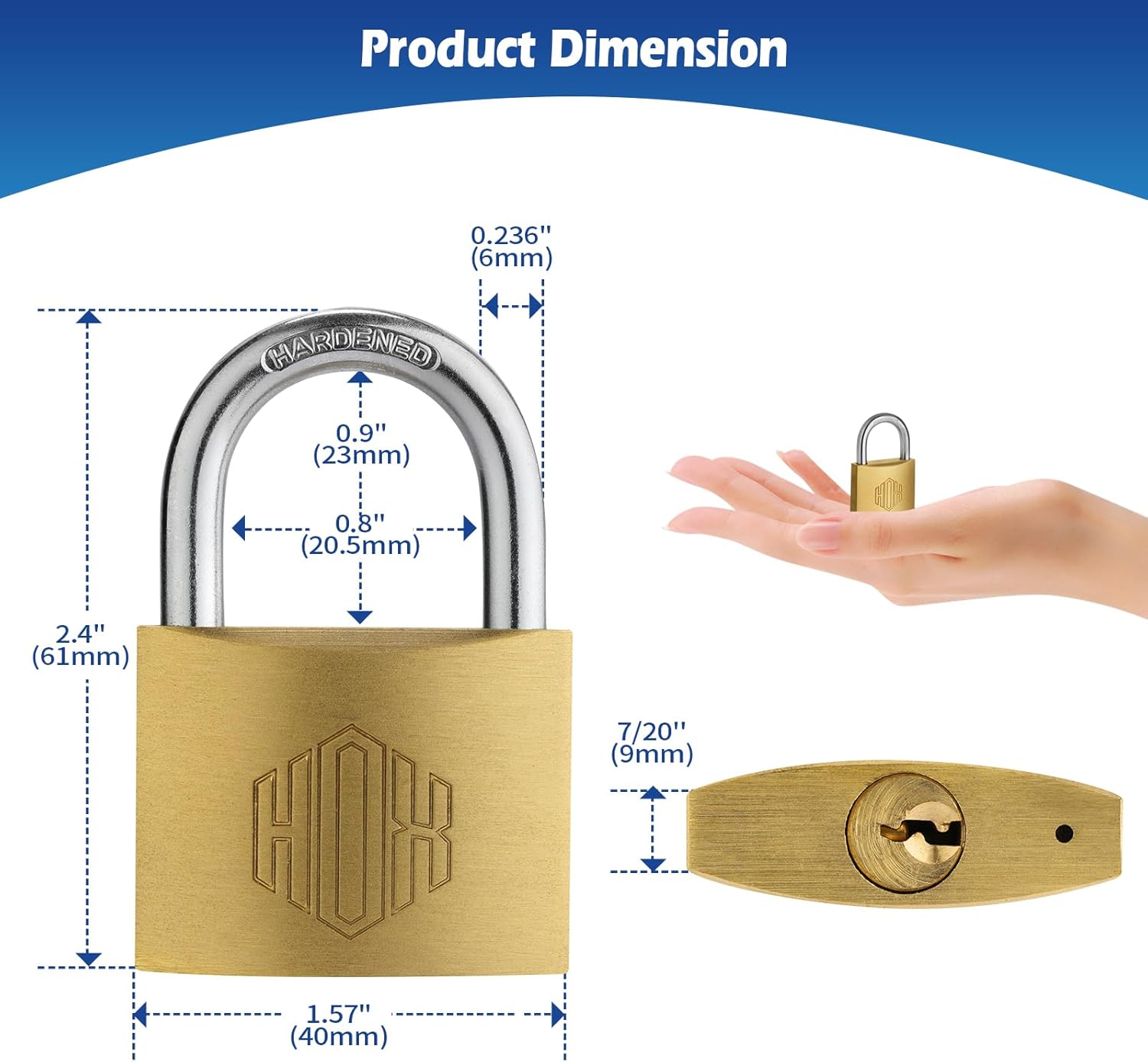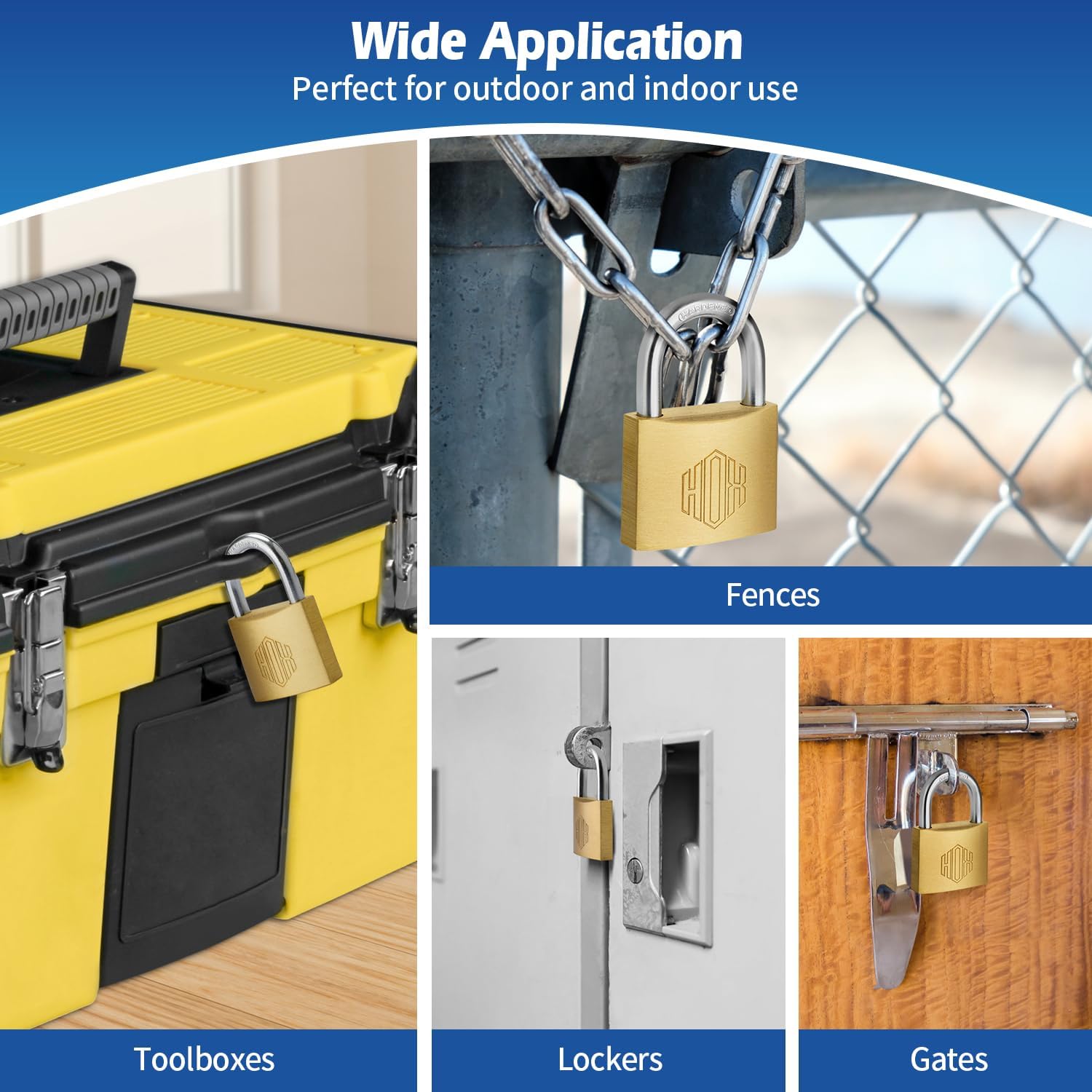 HOX Stable Brass Keyed Completely different Padlock with 1-9/16-Inch Huge Physique, Brass Cylinder – for Hasp Latch, Sheds, Fences, Storage Locker, 6-Pack