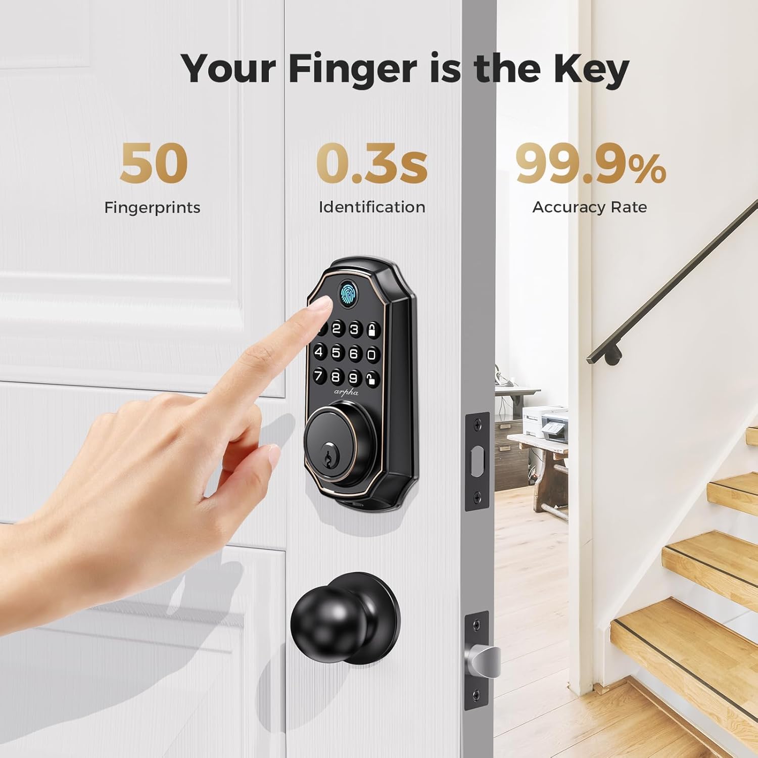 【AI Fingerprint Sensible Deadbolt】Your Finger is Your Key! This fingerprint door lock has AI self-learning perform with a 99.99% biometric fingerprint recognition price. Sensible entrance door lock can acknowledge your fingerprint in simply 0.3 seconds and unlock your door in 1 second. Say goodbye to keys and fumbling with locks.