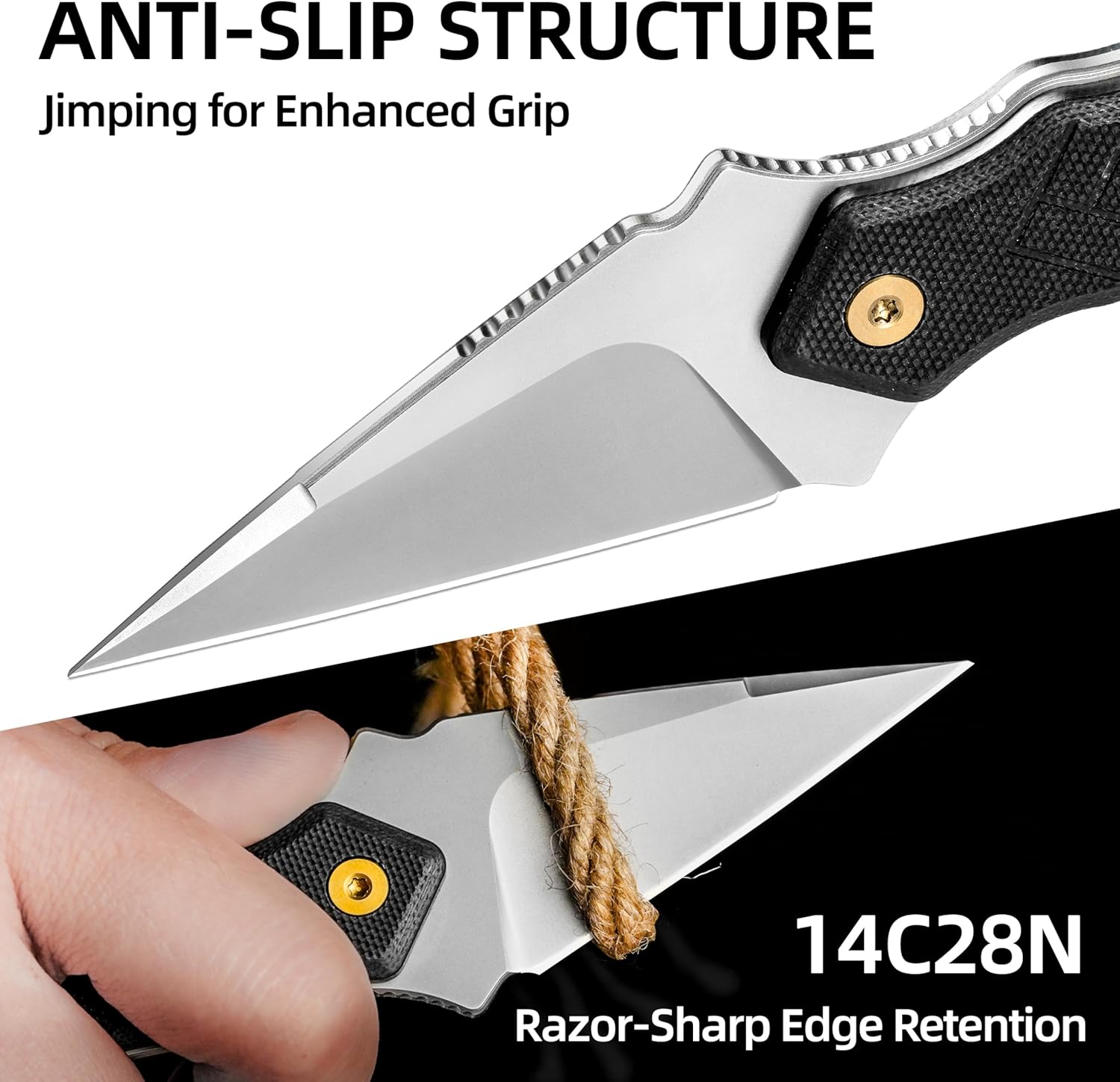 2.46″ FULL TANG FIXED BLADE KNIFE: 14C28N high-quality blade neck knife general size 6.7″, distinctive energy, excellent edge retention and corrosion resistance, versatile for varied slicing duties