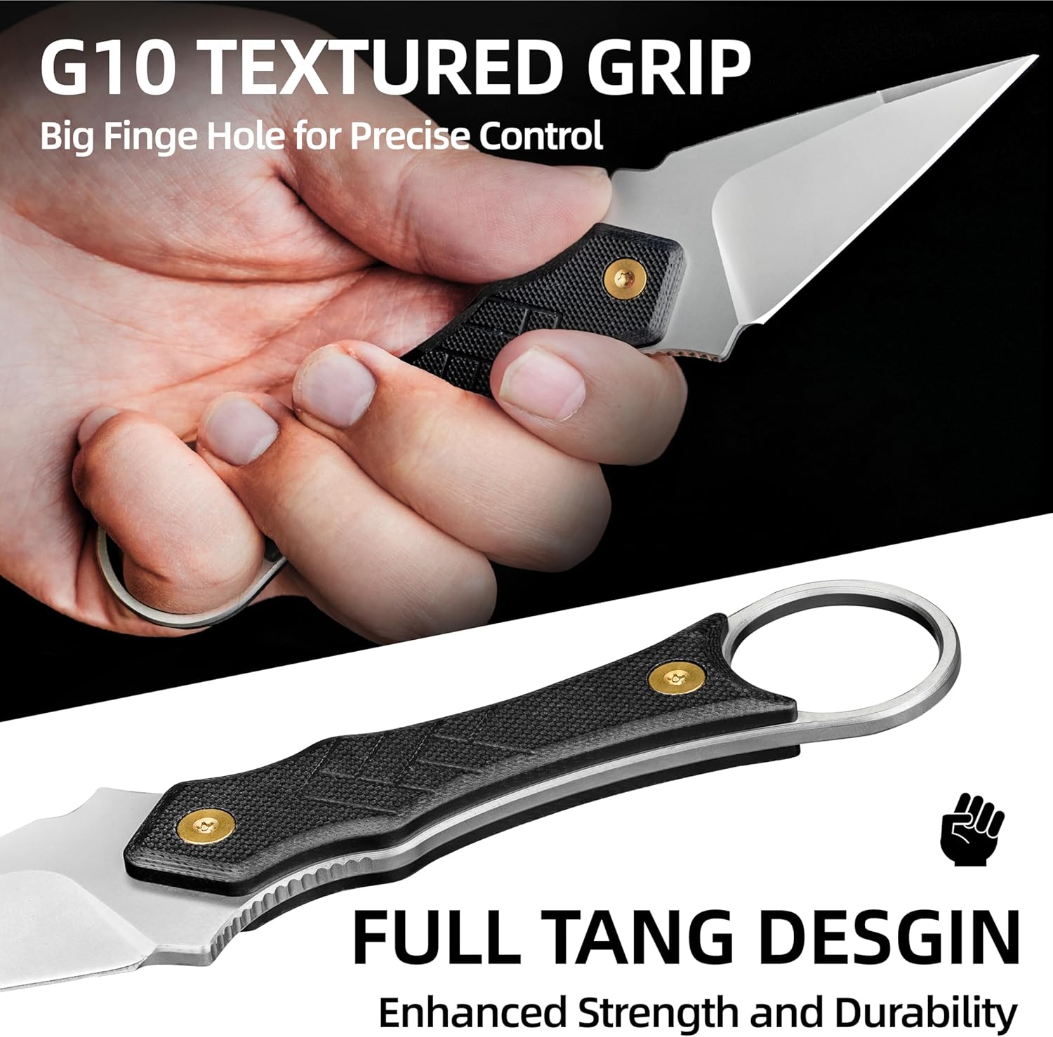 COMFORTABLE & SAFE G10 HANDLE EDC KNIFE:The ergonomic G10 deal with with jimping and finger grooves for secure grip,neck knife has outsized finger ring on the deal with which make the knife will not slip out of your arms simply,energy your journey and routines