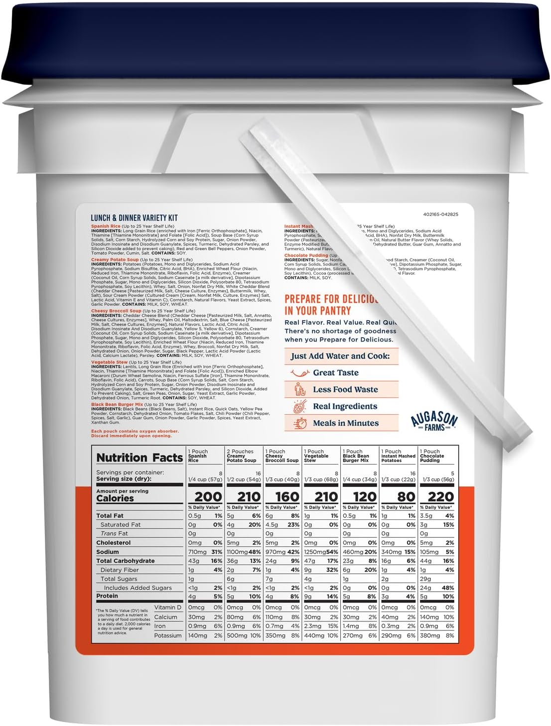 LONG SHELF LIFE CAMPING COOKING ESSENTIALS – Designed for long run storage in your kitchen, tenting provides, or earthquake emergency package, this bucket of dehydrated ready meals able to eat has 113 servings and a 25-year shelf life.