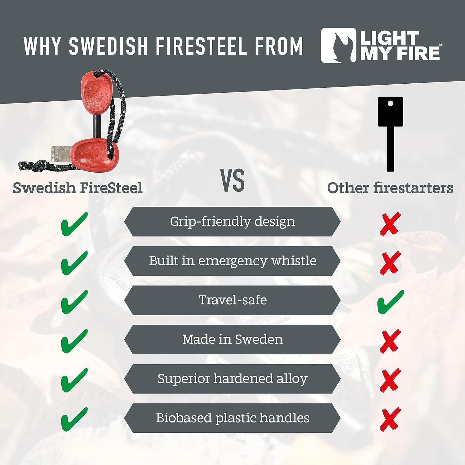 LIGHT MY FIRE SWEDISH FIRESTEEL survival instruments are of navy grade requirements and are made in Sweden. We’re the unique and our survival gear and gear is premium high quality. We reconnect people with nature to create a sustainable planet.
