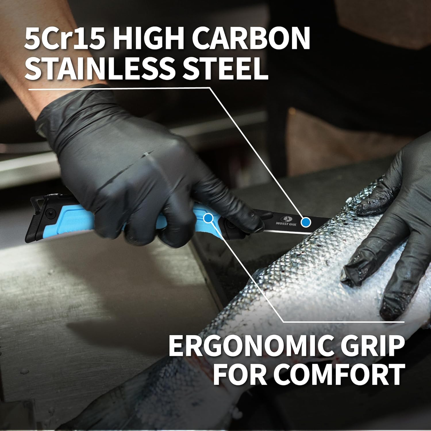 Mossy Oak Fillet Knife, 5.5” Folding Fillet Knife with Razor Sharp 5Cr15 Stainless Metal Blade, Non-Slip Deal with, Protecting Sheath, Rust & Corrosion-Resistant Filet Knives for Fish Filleting & Boning