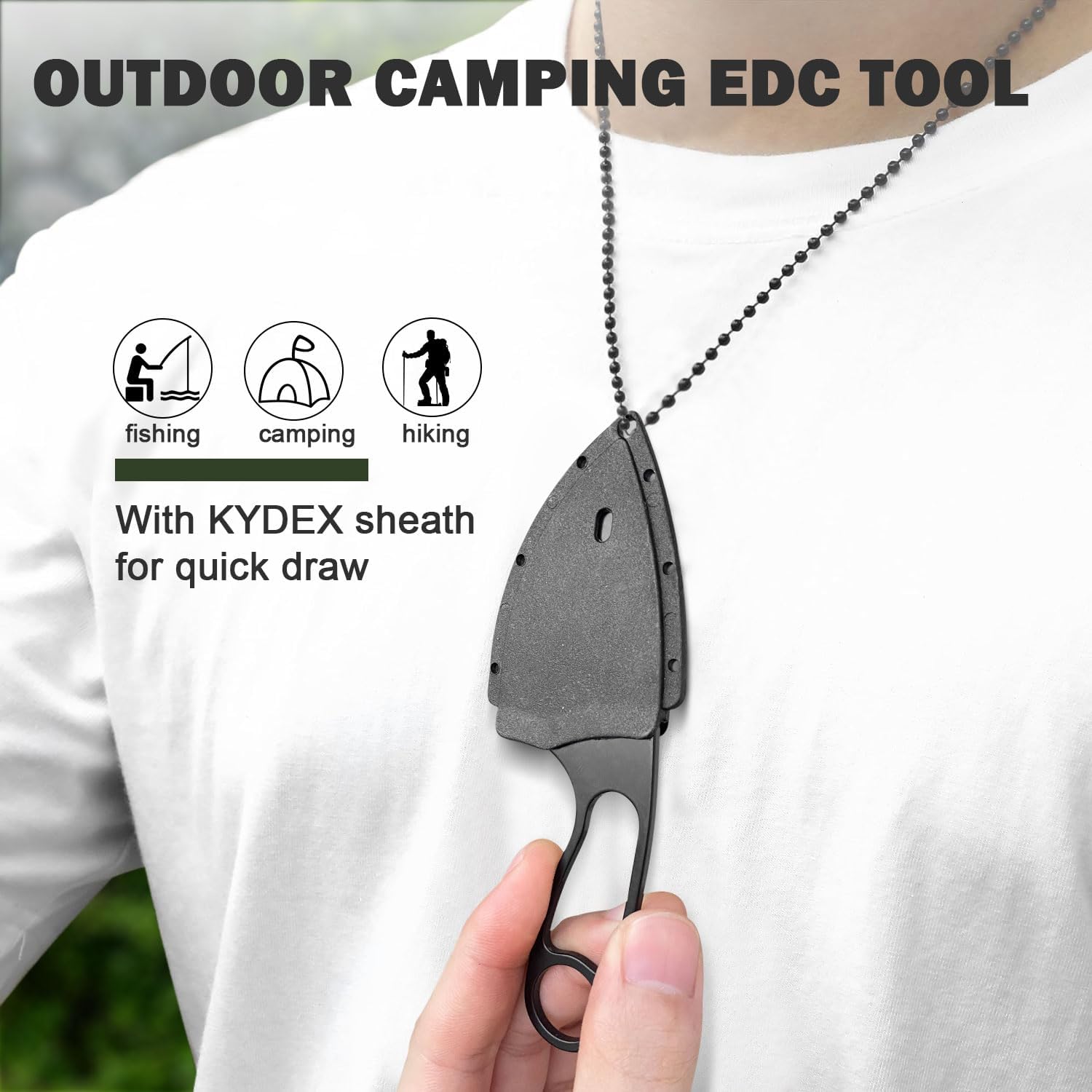 【EASY TO CARRY】This compact fixed-blade neck knife features a sheath and ball chain for fast entry, boosting security in emergencies and day by day use
