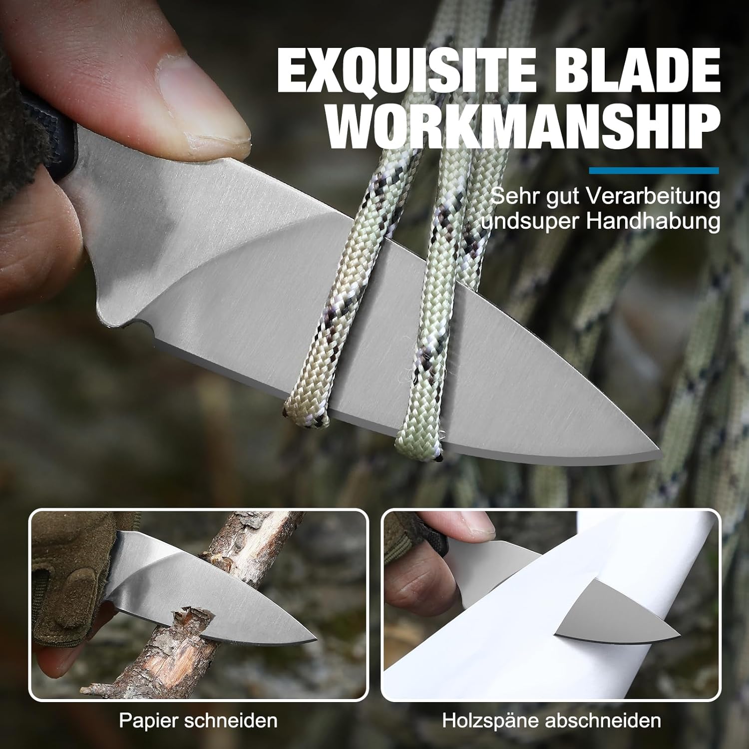 EASY TO CARRY NECK KNIFE:This small fastened blade knife comes with a necklace for carrying round your neck, making it excellent for climbing, tenting and fishing.