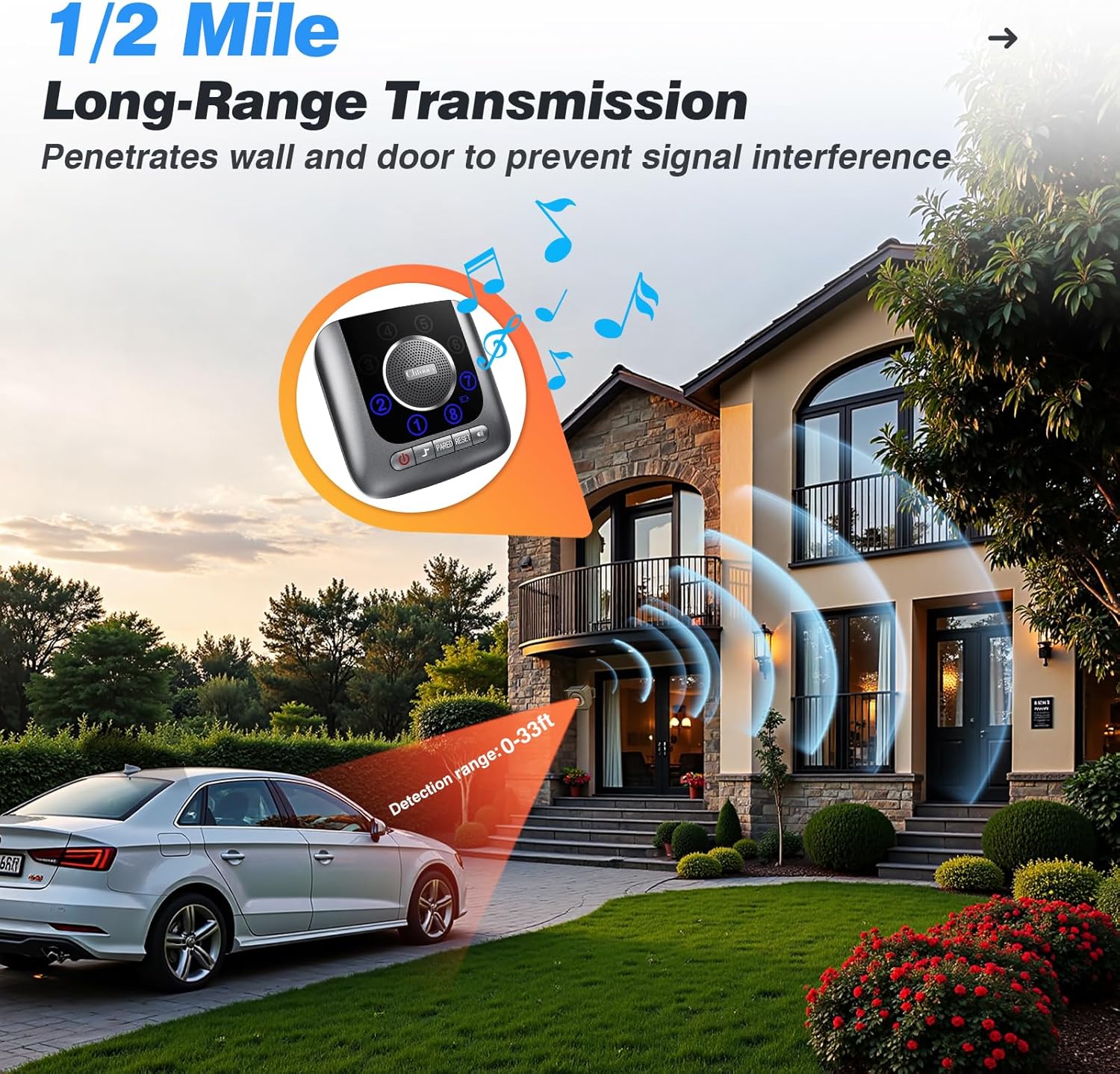 3 Sensitivity Ranges & Customized Alerts: With 3 adjustable sensitivity ranges and as much as 33ft detection width, false alarms are minimized. Select from 12 chimes, 4 quantity settings (together with mute mode), and LED flash alerts on the receiver for exact, day-or-night notifications.