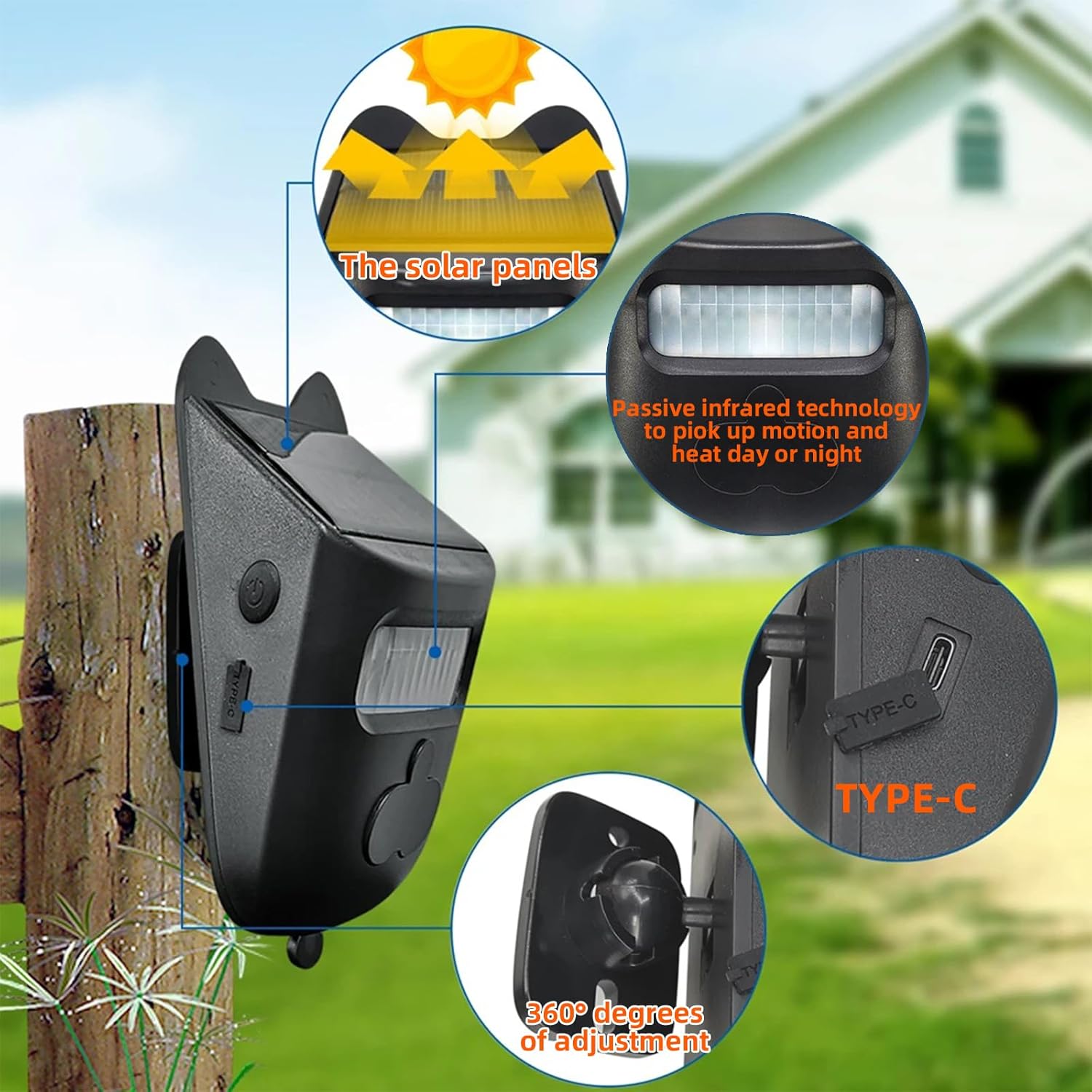 【Photo voltaic & USB-C Twin Charging】 Costs totally in 8 hours of daylight and lasts 4+ months on standby. 1 hour of daylight = 1 day of energy. USB-C backup ensures uninterrupted use.
