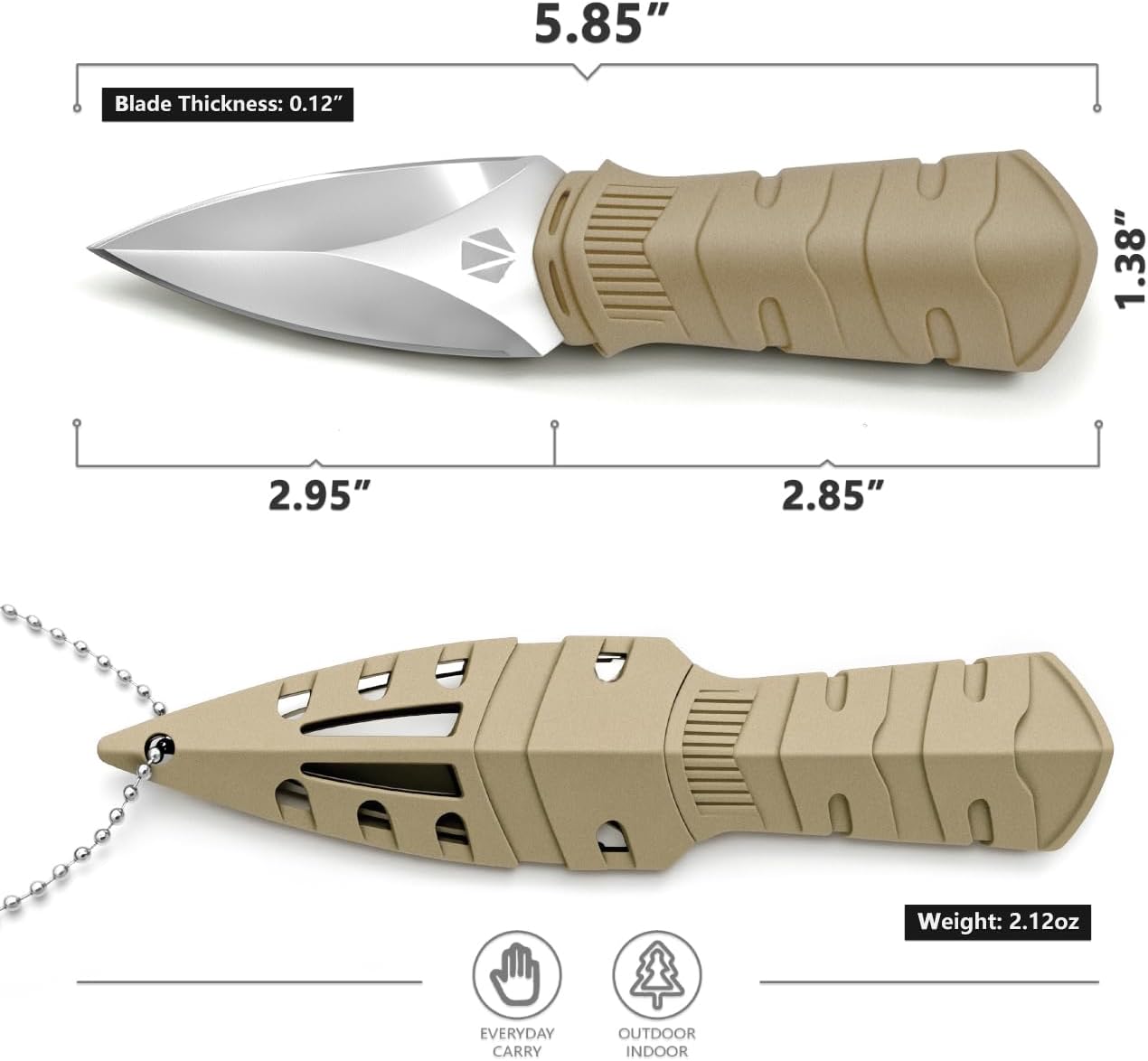 EASY TO CARRY: It is a light-weight edc fastened blade knife, designed for simple carrying, with a sturdy plastic sheath and a sturdy ball chain, permitting you to hold it conveniently