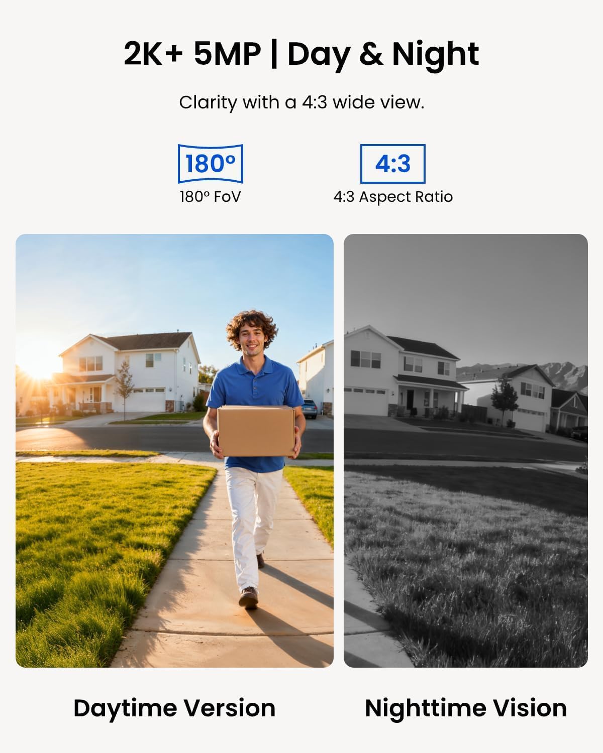 2K Tremendous HD & 4:3 Side Ratio: Benefit from the tremendous extensive subject of view of 135° (H) x 100° (V) x 180° (D). Discover the best place on your doorbell with its 15° wedge equipment. Unbelievable 2K HD, together with superior HDR, 3D DNR, and distortion correction applied sciences, supplies sharp and detailed photos even in low gentle circumstances.