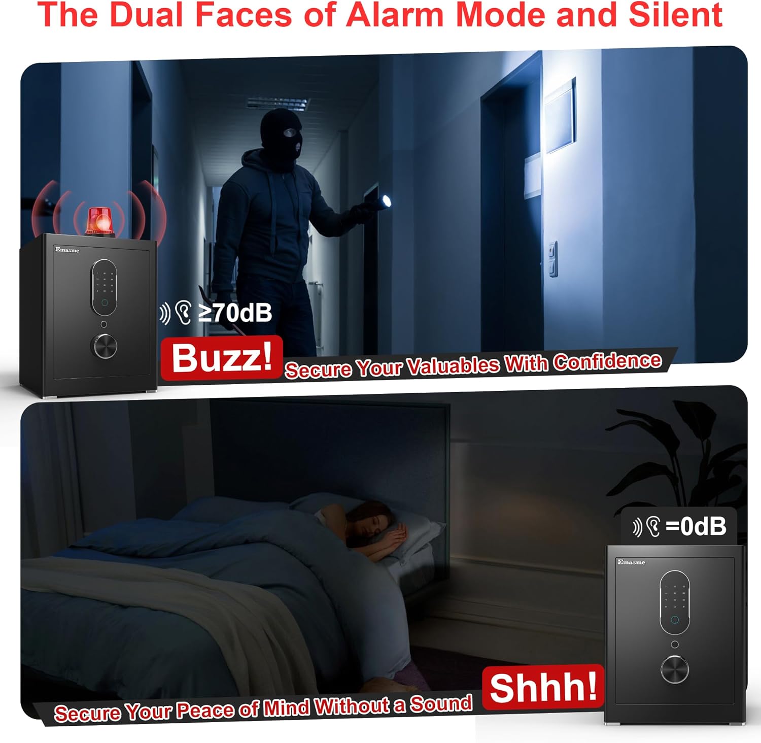Secure Field, Cash Secure with Fireproof Waterproof Bag, Medium Dimension Safes with Digital Keypad, Twin Alarm System, Detachable Shelf for Valuables & Money (Improve 2.0 CUFT Biometric