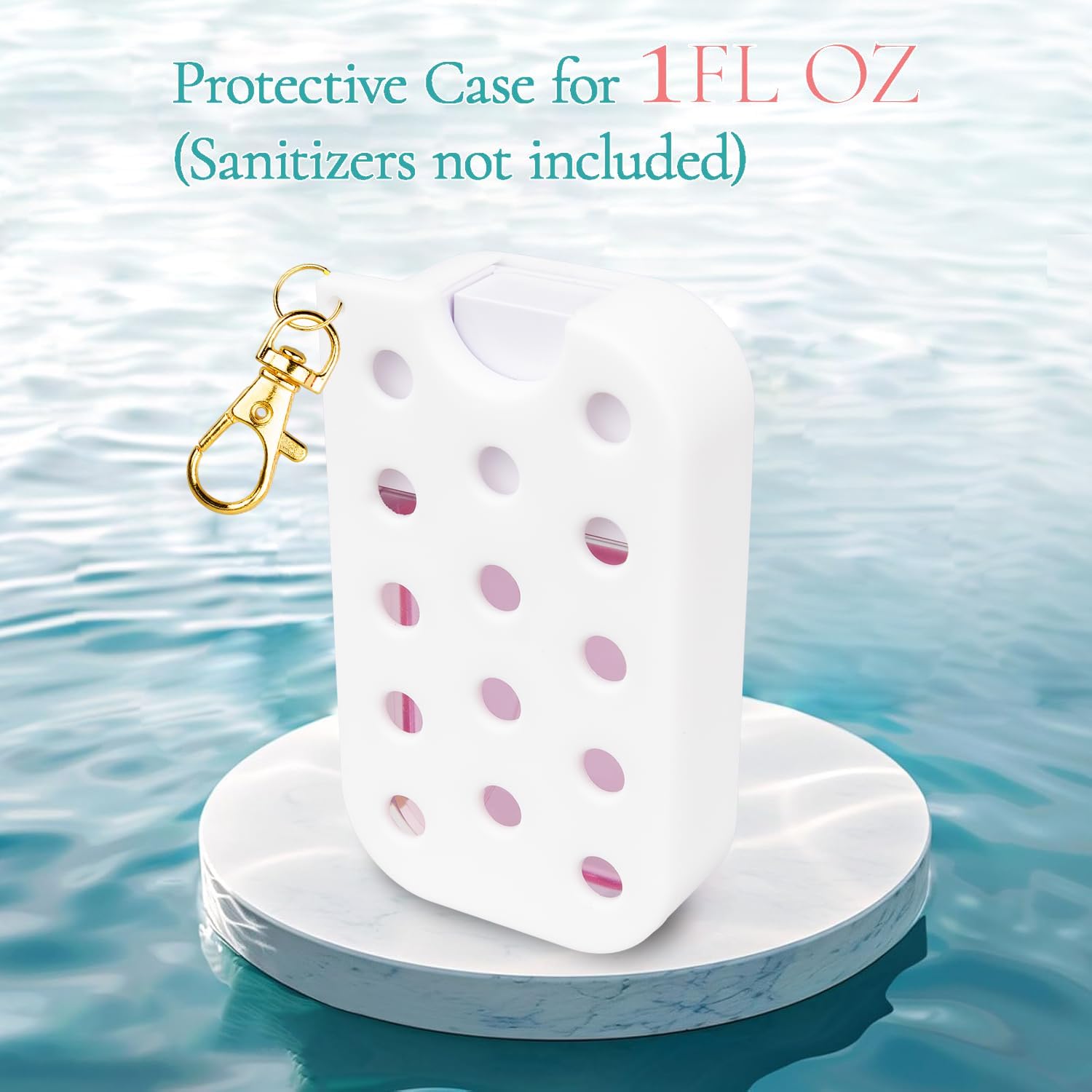 Silicone Case with holes Appropriate with Touchland Hand Sanitizer Spray, Protecting Case with Keychain for 1 fl oz, Hand Sanitizer Spray Accent, Charms not Included (White)
