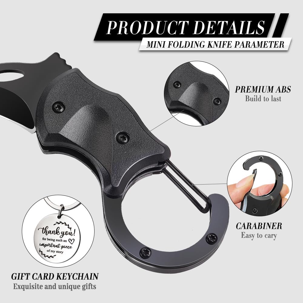 Small Pocket Knife Presents for Males Dad, EDC Field Cutter with Reward Card Keychain, Mini Folding Knives Devices for On a regular basis Carry, Carabiner Pocket Knife Tenting Mountain climbing Fishing Device, Christmas Reward- 1 Pack