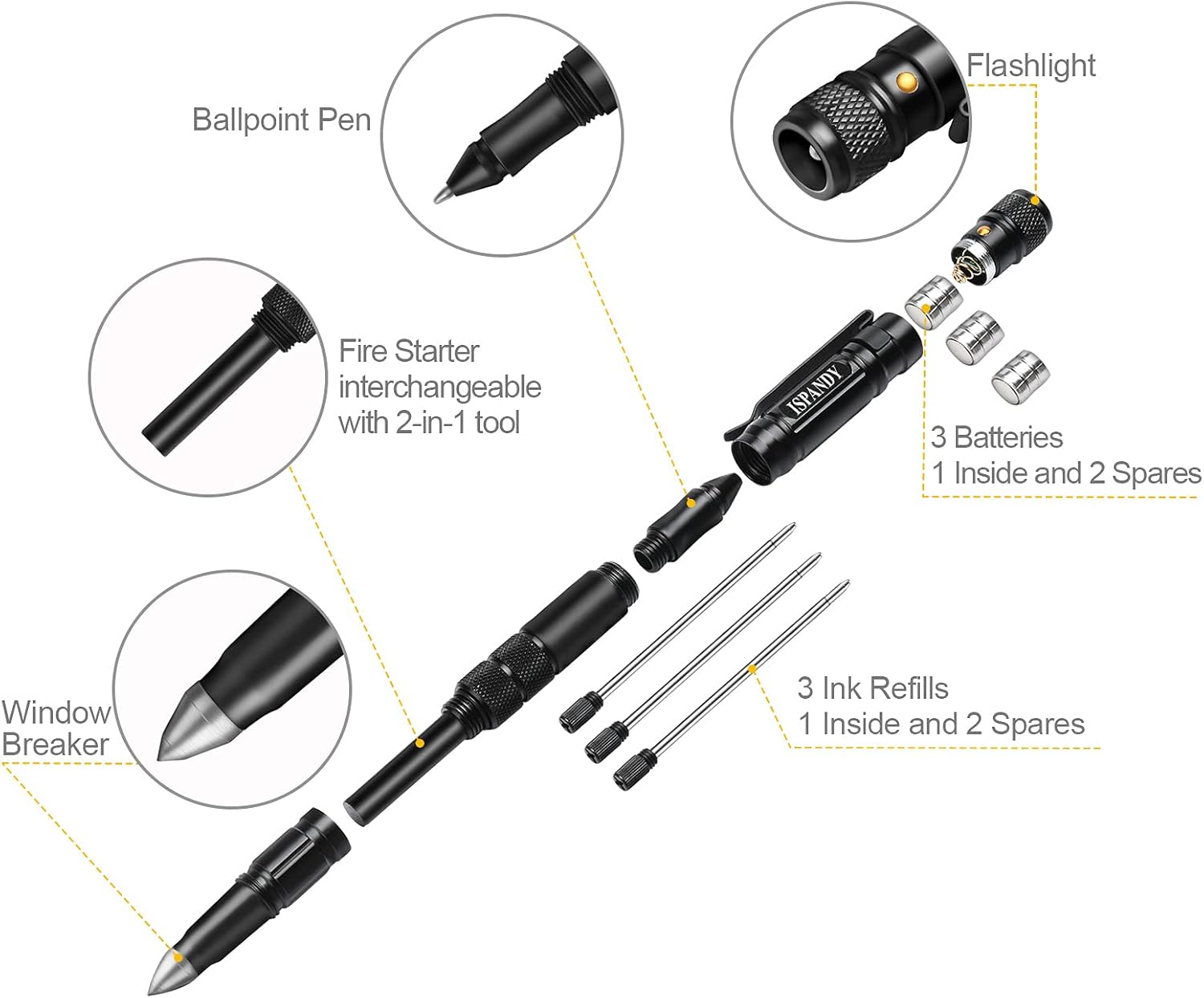 Cool Gadets Tactical Pen for Dad Males : multitool pen with beautiful packaging,comes with 2 further ink refills and a couple of further batteries, LED Mild, ballpoint pen, hearth starter ,glass breaker ,keychian device handy capabilities