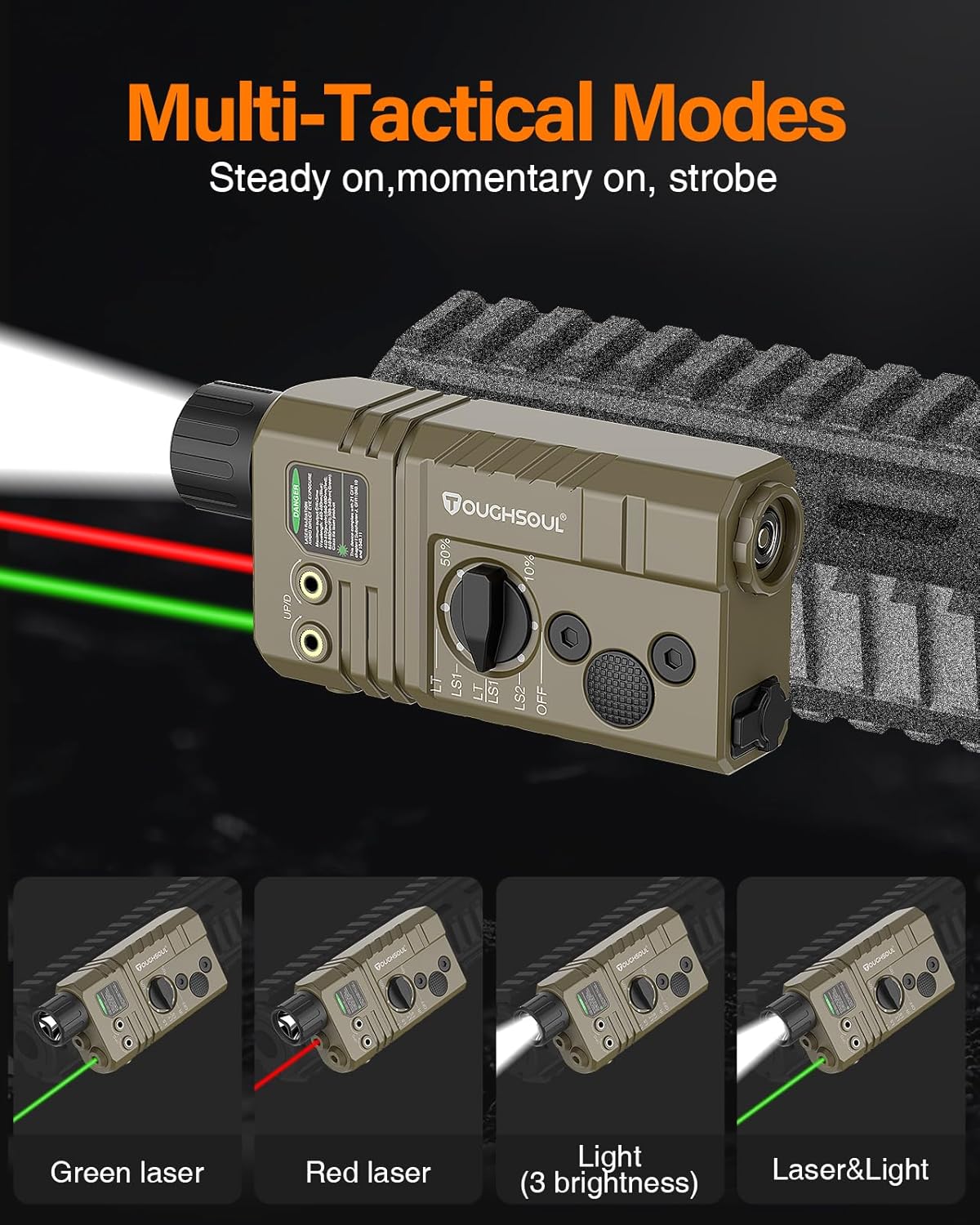 TOUGHSOUL Mlok and Picatinny Mounted Tactical Flashlight Inexperienced/Pink Laser 3 in 1 Combo, 1600 Lumen Rifle Mild with Distant Strain Swap