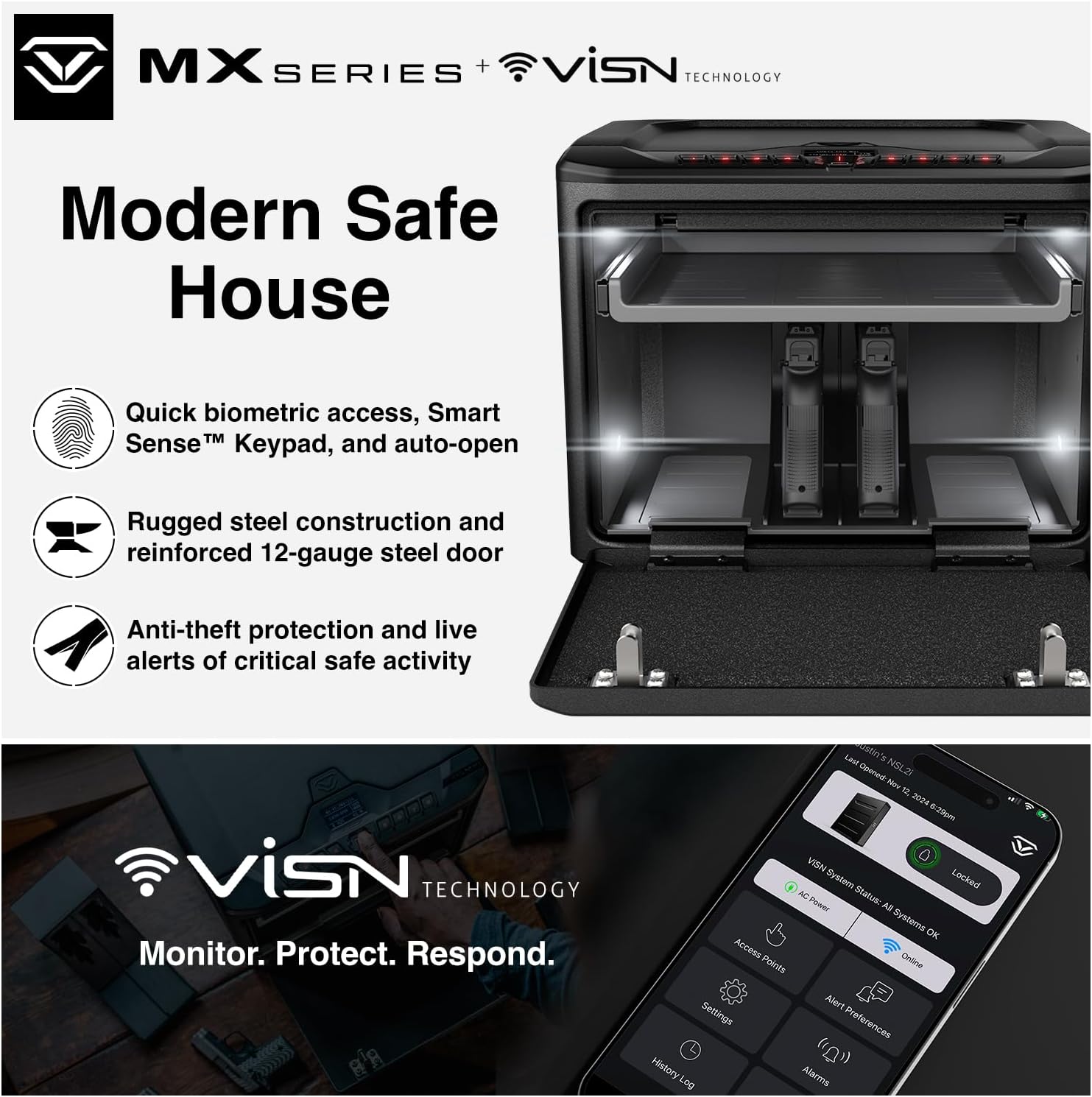 ViSN (Vaultek Clever Protected Community) Vaultek’s ViSN platform makes use of WiFi enabled cloud know-how to handle the secure and ship dwell alerts for secure exercise. ViSN delivers the total sensible secure expertise with all new options and an unique iOS/Android smartphone app that gives intuitive guided setup and actual time secure monitoring. Keep knowledgeable and in management always. **ViSN safes are made to be used within the US solely and the Wi-Fi features is not going to be supported exterior the US**