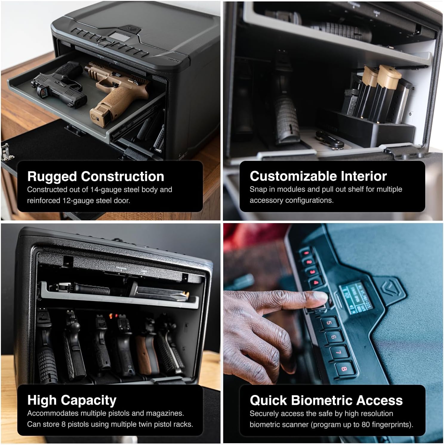 Fast Entry with an outsized excessive decision biometric scanner able to storing as much as 80 distinctive fingerprints, auto-illuminating 8-digit keypad with built-in proximity sensor, Nano Key 3.0, or backup guide keys. Instantaneous entry to your valuables, paperwork, and firearm(s) with the automated opening door. Responsive proximity sensor illuminates the keypad in low gentle conditions and built-in LCD display offers fast visible suggestions and person pleasant programming.